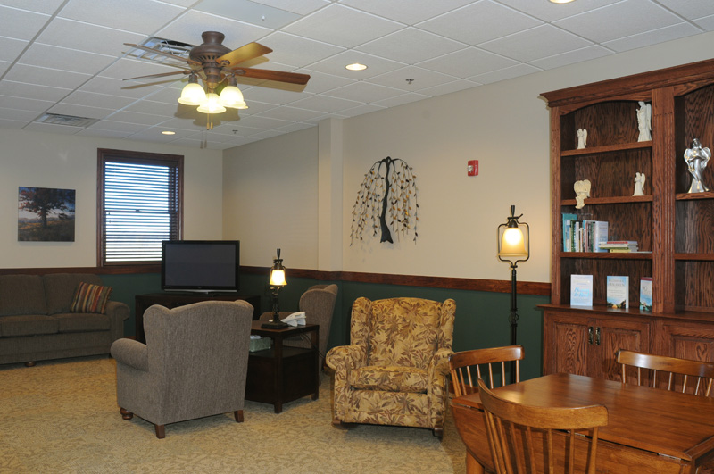 Eight-unit hospice home. Facility includes family accommodations, full-service kitchen, chapel and children’s area. Schmeling Construction Co. performed the carpentry and masonry work. The facility has a warm, home-like feel, not institutional. This facility also includes a well for domestic and fire protection, emergency generator, rooftop HVAC units, nurse call system.